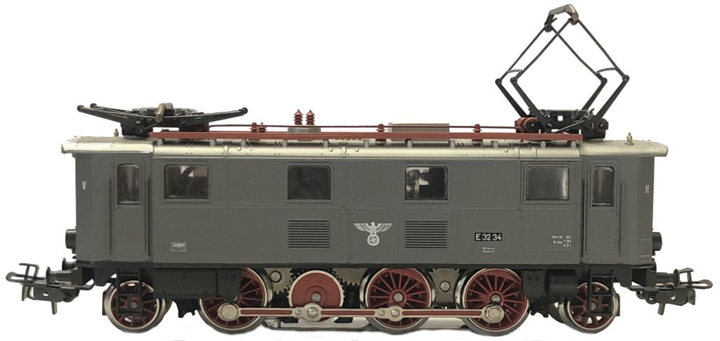 .3 1984 ? wie .2, jedoch grau, DRG, mit Hoheitszeichen, Beschriftungen weiß gedruckt. Betriebsnummer E 32 34 weiß auf schwarzem Grund gedruckt.