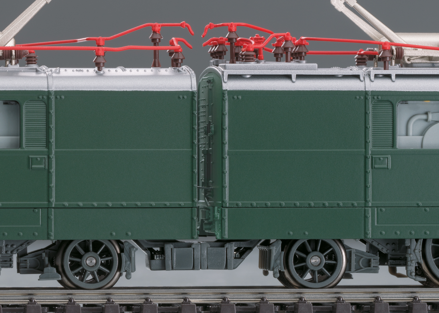 Modell: Mit Digital-Decoder mfx+ und umfangreichen Licht- und Soundfunktionen. In jeder Lokhälfte ein geregelter Hochleistungsantrieb mit Schwungmasse. Jeweils 4 Achsen in jeder Lokhälfte angetrieben. Fahrtrichtungsabhängig wechselndes Dreilicht-Spitzensignal und 1 weißes Schlusslicht konventionell in Betrieb, digital schaltbar. Umschaltbar auf 1 rotes Schlusslicht bei Solofahrt. Doppel-A-Licht-Funktion. Beleuchtung mit wartungsfreien warmweißen und roten Leuchtdioden (LED). Falschfahrtsignal, Führerstandbeleuchtung und Maschinenraumbeleuchtung digital schaltbar. Kulissengeführte Kurzkupplungen an den Enden der Lok, trennbare Kurzkupplung zwischen den Lokhälften. Detaillierte Dachausrüstung mit Dachleitungen, Isolatoren und Dachlaufbrettern sowie Scherenstromabnehmern. Beide Stromabnehmer digital heb- und senkbar. Befahrbarer Mindestradius 360 mm. Die Aussparungen in den Frontschürzen neben dem Normschacht können mit den beiliegenden Füllstücken verschlossen werden. Bremsschläuche und Schraubenkupplungsimitationen liegen bei.