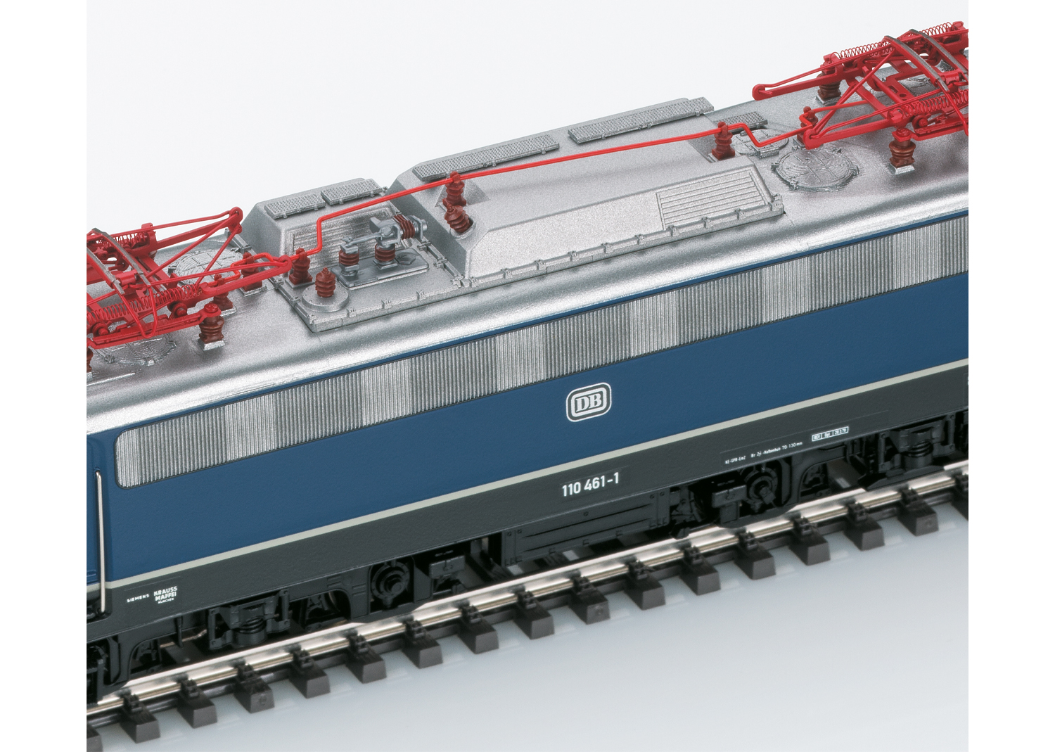 Modell: Mit Digital-Decoder mfx+ und umfangreichen Geräuschfunktionen. Geregelter Hochleistungsantrieb mit Schwungmasse, zentral eingebaut. Alle vier Achsen über Kardan angetrieben. Haftreifen. Fahrtrichtungsabhängig wechselndes Dreilicht-Spitzensignal und zwei rote Schlusslichter konventionell in Betrieb, digital schaltbar. Spitzensignal an Lokseite 2 und 1 jeweils separat digital abschaltbar. Doppel-A-Licht-Funktion. Führerstandsbeleuchtung digital schaltbar. Beleuchtung mit wartungsfreien warmweißen und roten Leuchtdioden (LED). Detailliert ausgeführte Dachaufbauten mit neu konstruierten Stromabnehmern der Bauart DBS 54. Stromabnehmer digital heb- und senkbar. Viele separat angesetzte Teile wie Griffstangen, Tritte und UIC-Steckdosen. Pufferhöhe nach NEM. Kinematikgeführte Kurzkupplungen. Bremsleitungen und Schraubenkupplungen liegen als separat ansteckbare Teile bei.