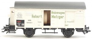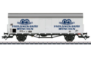 Vorbild: Gedeckter Güterwagen der Austauschbauart Gl 22 (Glr “Dresden”) der Deutschen Bundesbahn (DB). Kurze Ausführung, ohne Handbremse, Bremserbühne und Bremserhaus. Ausführung ohne Stirnwandtüren. Ultramarinblaue Grundfarbgebung, mit Werbung. Betriebszustand um 1957.