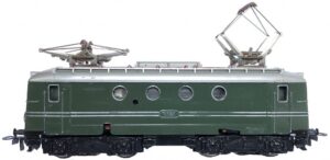 wie .15, Betriebsnummer Ee 3/3 16332, Radsatz und Gestänge schwarz, Gehäuse braun, Dach grau, Aufschriften gelb gedruckt. Elektromechanischer Umschalter. Nur in Export Zugpackung 28722 für die Schweiz. Für Toys “r” us, mit der Artikelnummer 2993. |