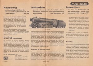 Variante Jahrgang Druckcode Sprache Beschreibung Preis .1 1938 Y 0938 r italienisch Märklin 800 Gebrauchsanweisung für die elektrische Modelleisenbahn, 15,0 ...