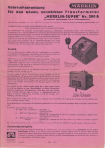 1950 / 09 : Gebrauchsanweisung für den neuen, verstärkten Transformator „MÄRKLIN-SUPER” Nr. 280 A