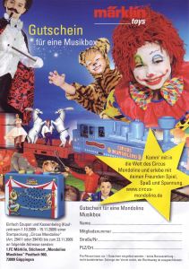 2009 Märklin Toys – Gutschein für eine Musikbox