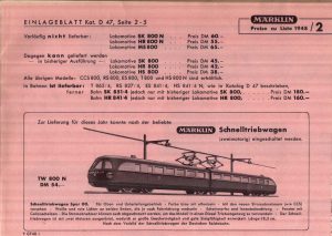 1994 Numerischer Begleitkatalog zum Märklin Hauptkatalog 1994 – 1995