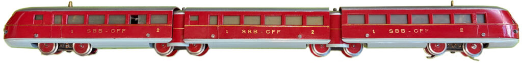 Dreiteiliger Elektrischer Schnelltriebwagen wie TW 800 / TW 800 N mit zusätzlichem Mittelteil. Zwei Motoren mit Schleifer, rot lackiert mit goldfarbener Aufschrift „SBB – CFF” sowie Bezeichnungen der 1. und 2. Klasse.